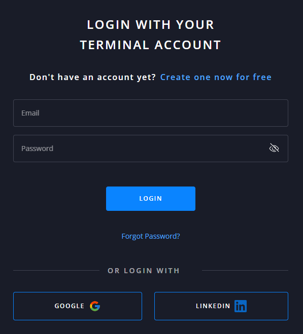 Enter your Terminal email and password, then select Log in.