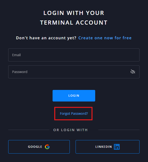 Go to the login page. Enter your Terminal email and password, then select Log in. Alternatively, you can log in via Google or LinkedIn. Already use Freightos.com? You can sign in to Terminal with the same credentials - no extra setup. Forgot your ...