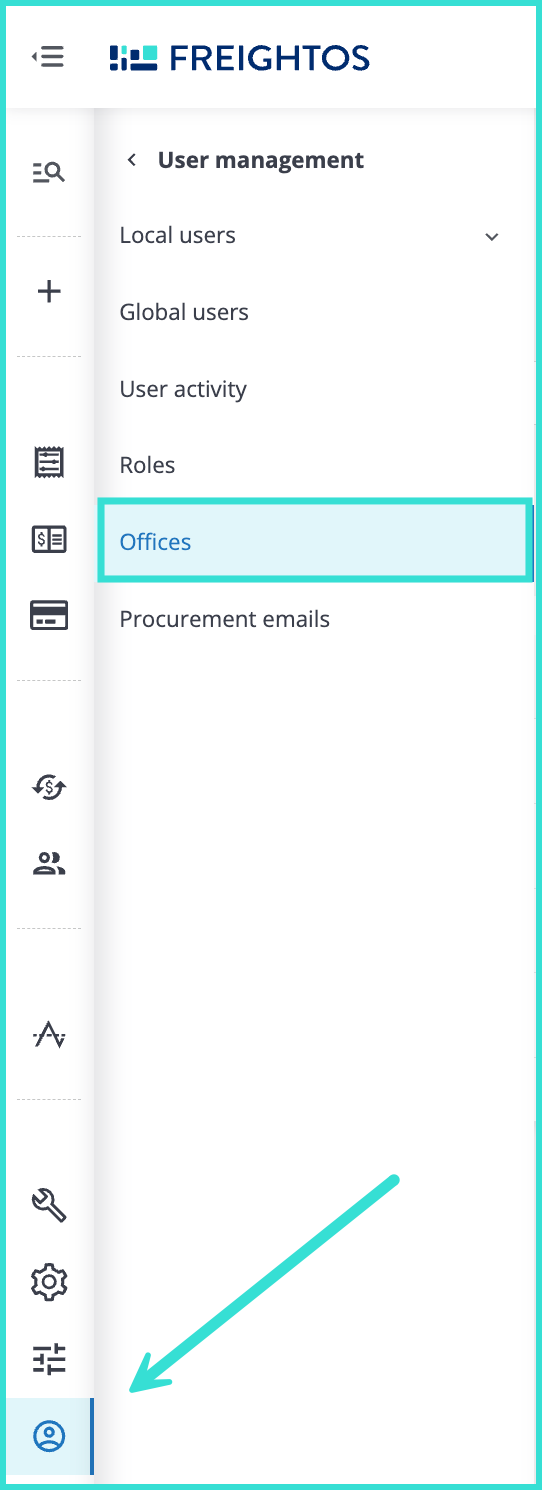 To navigate to the Offices section, open the side menu, then select User management and then select Offices from the dropdown.
