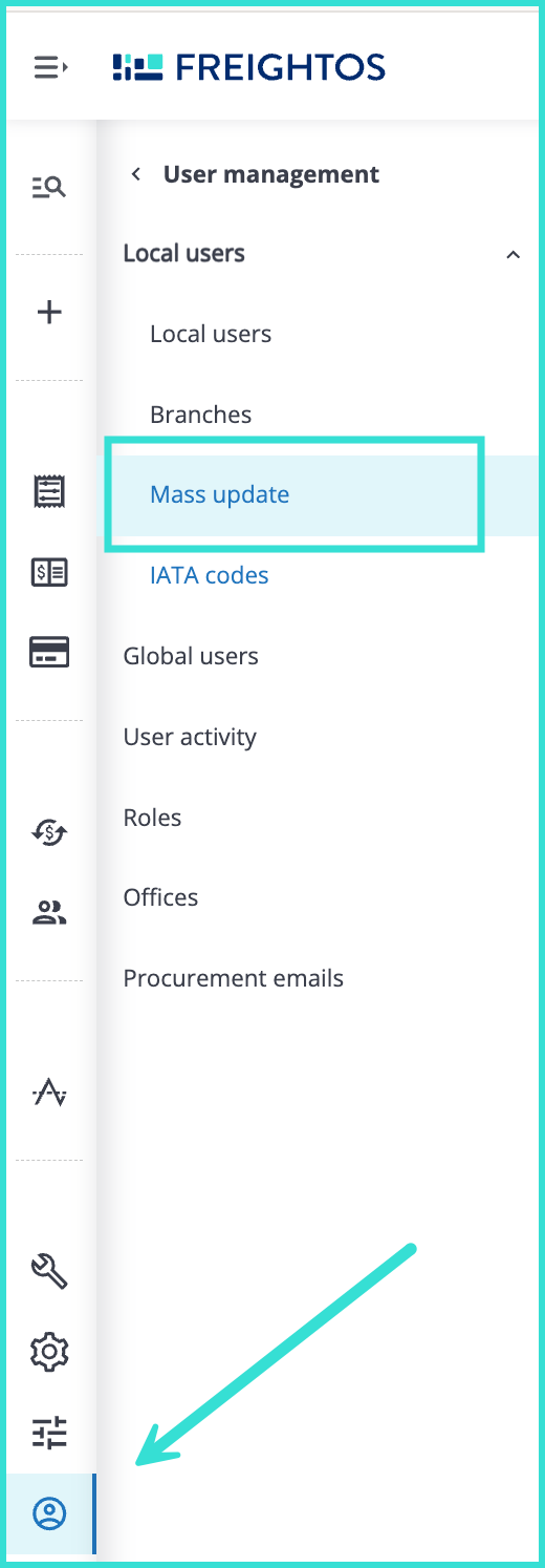 If you have groups of users that you want to update in one go, you can use the mass update feature on WebCargo. To use this, go to Settings, then Users, then select Mass update from the drop-down menu.
