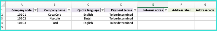 Important: some fields are mandatory, and without entering information within them, the file will not upload correctly. The following fields are mandatory for your file to save: Company.