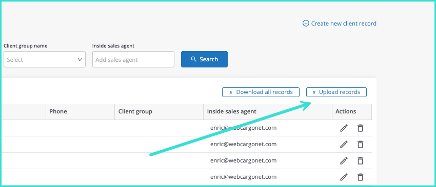 From here, you will see all of your client records. To upload a file, click on the Upload records button to start uploading your client information.