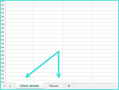 Click on Download our template and a download will start automatically. Once the file has been downloaded, find it in your computer’s downloads folder and open it. Within the file, you’ll find all the different field titles, as well as two tabs Client details and Values.