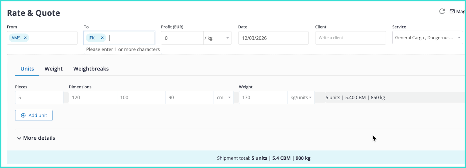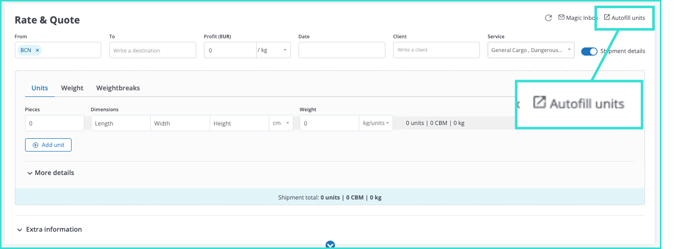 This guide explains how to use Autofill Units and Magic Inbox in WebCargo. Together, these tools streamline the quotation process by consolidating shipment details in one place and automatically parsing client email requests to speed up quoting.