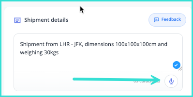 You can also use your voice to enter the shipment details. Simply click on the microphone symbol, allow your browser permission to use your microphone and speak. Please be advised that this tool is still in testing, so may present errors. Make sure to check everything before submitting.