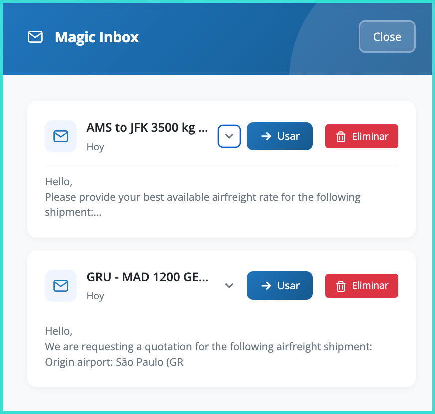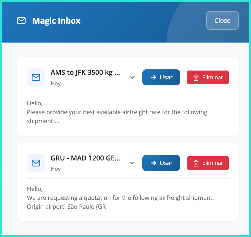 Using the Magic Inbox feature, you can automate the processing of client quotation requests received via email directly from your account.
