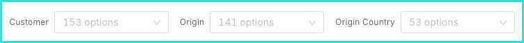 On the header, you’ll also find the option to filter by Customer, Origin or Origin Country. Simply choose your options from the dropdown menus.