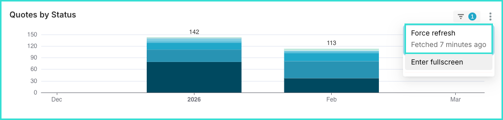 The data shown is updated daily. Additionally, you can click on the three dots on the top right corner of each chart to see when the data was last updated or click Force refresh to show the most recent information.